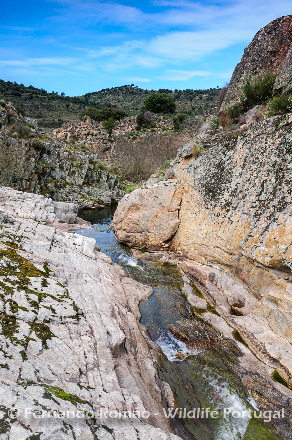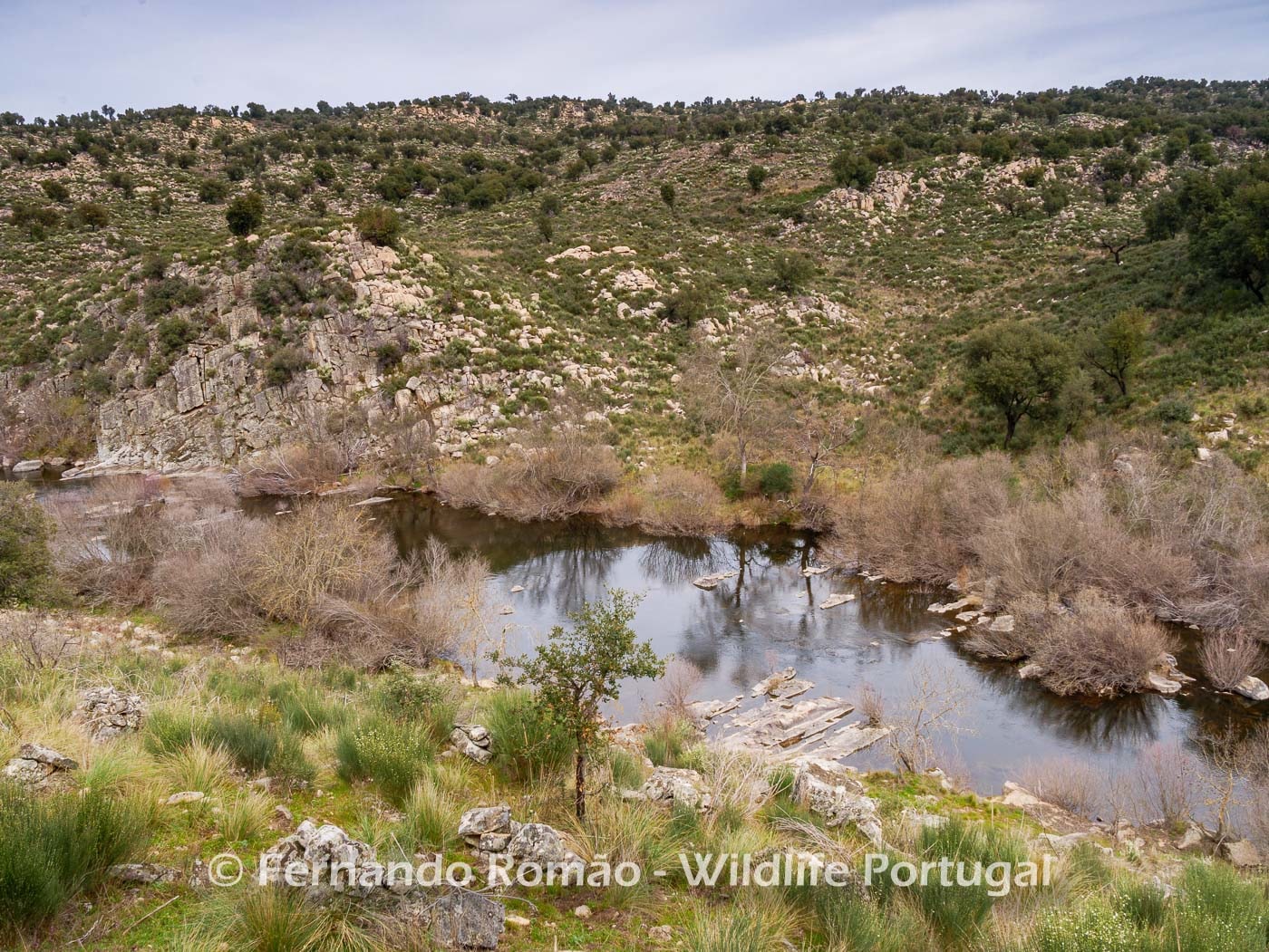 Ermo das Águias is located roughly in the middle of the course of the Côa River, on a steep slope of the left bank, where the landscape of the river valley is marked by crags and rough scarps. The opposite slope, however, shows a significant Cork Oak (Quercus suber) area.